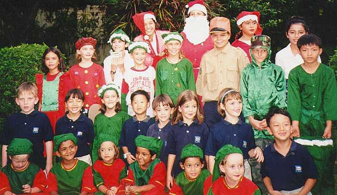 Mr. Stroud, Mbak Sarie and Pak Tusi join the Upper Primary Class for a two part harmony rendition of "Joy to the World." |