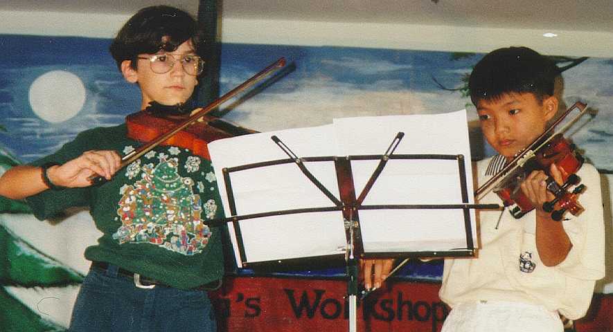 Tomas and Jae Joon play a few Christmas tunes on the violin. Many Y.I.S. students study with private music, art and dance teachers. |