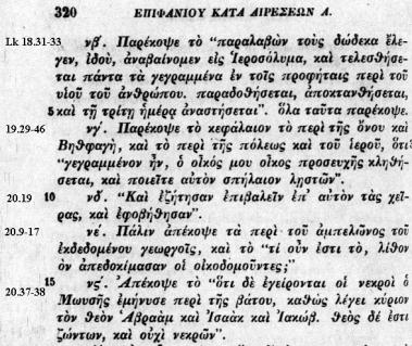 Luke 18:31-33 Marcion "falsified...in its entirety". Luke 19:29-46 "falsified". Luke 20:9-17 "excised". Luke 20:37-38 "excised"