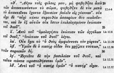 Luke 12:6 missing. Luke 12:8 "before God" instead of "before the angels of God". Luke 12:28- missing. Luke 12:32 "Father" instead of "your Father".