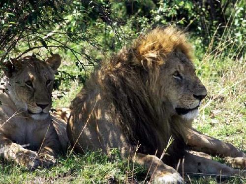 Lions live together in family groups called "prides." The female, or lioness, does all the hunting. Males are too big to hunt successfully, so they defend the family against threats. | ![]() |