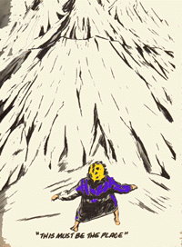 He found a narrow, stony path that wound up into the moutain. After a little while it went into a small valley cut into the side of the slope. The floor of this valley was a long sheet of ice. At the far end a sharp ridge of rock and ice stretched across the width of the valley. In the middle of this ridge was a gap. Just before this gap was what looked like a person sitting. As Diamond came closer and closer he saw who it was.