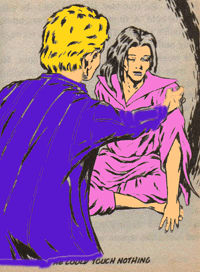 though." "I don't mind that, if you tell me to do it." "Do it," she said, very faintly. Diamond stepped up to her and out out his hand. He could touch nothing. His heart pounding, he walked on. Suddenly the cold stabbed into him. All around him was nothing but blinding whiteness. He stumbled ahead, gasping in pain from the cold. A few clumsy steps more and his legs wouldn't move. Then he was falling forward, feeling nothing, falling, falling, falling. He woke and sat up. The cold was gone. He was lying in a meadow of soft, sweet-smelling grass, full of bright red and yellow flowers. A little stream flowed softly through the meadow. Its bed was not pebbles or mud, but only the meadow grass, which wafted gently in the slow current. |
