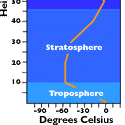 higher nearer the equator and lower nearer the poles. The stratosphere defines a layer in which temperatures rises with increasing altitude. At the top of the stratosphere the thin air may attain temperatures close to 0°C. This rise in temperature is caused by the absorption of ultraviolet (UV) radiation from the Sun by the ozone layer. Such a temperature profile creates very stable atmospheric conditions, and the stratosphere lacks the air turbulence that is so prevalent in the troposphere. Consequently, the stratosphere is almost completely free of clouds or other forms of weather. The stratosphere provides some advantages for long-distant flight because it is above stormy weather and has strong, steady, horizontal winds. |