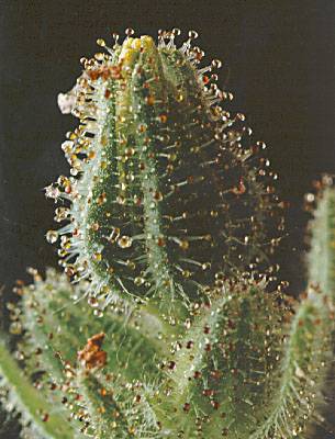 Nótese las gotitas de aceite en el extremo de los pelos glandulosos.