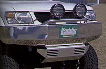 This White Cruiser is ready to hit the trail! Notice the aluminum roof rack, stainless steel bumper, with giant round foglights. Also notice the lift on this baby! The front skid plate protects the delicate underside from nasty rocks. \