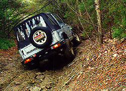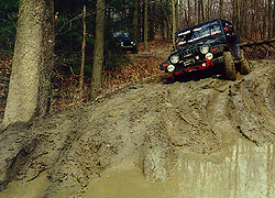 one particularly nasty off-camber hill. He runs a 2" lift and 32" Super Swampers.
