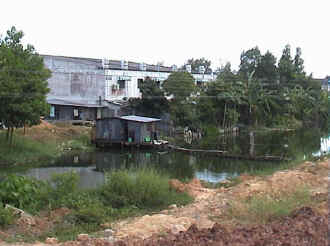 Heel veel nipa hutjes aan de rivier |