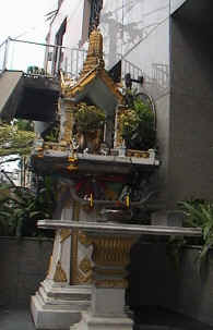 Dit moest even op de foto - in Thailand zijn er bij elk huis wel van deze kleine Boeddha tempeltjes waar men een wierrookje kan afsteken. |