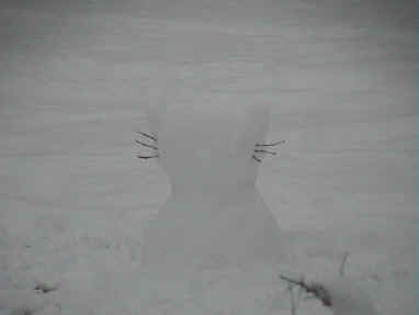 Een Hello Kitty sneeuwpop voor en na de dooi
