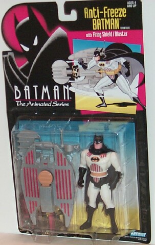 The figure was 121mm tall in a white costume with red detailing, black cowl, black gloves, black trunks, black boots and yellow belt as styled from the television cartoon. It had 5 points of articulation (neck/shoulders/hips). The basic body was not?? used for any other batman figures. |