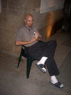 Okay, I managed to accidentally overwrite one kinda silly picture with this equally silly one. So probably only a select few of you saw the one of me holding the glass of water and talking to Mario and Fiona. Here is me showing off my American fashion sensibilities (note the socks with the sandals - I DIDN'T HAVE SHOES WITH ME AT THE TIME AND I'M SORRY).