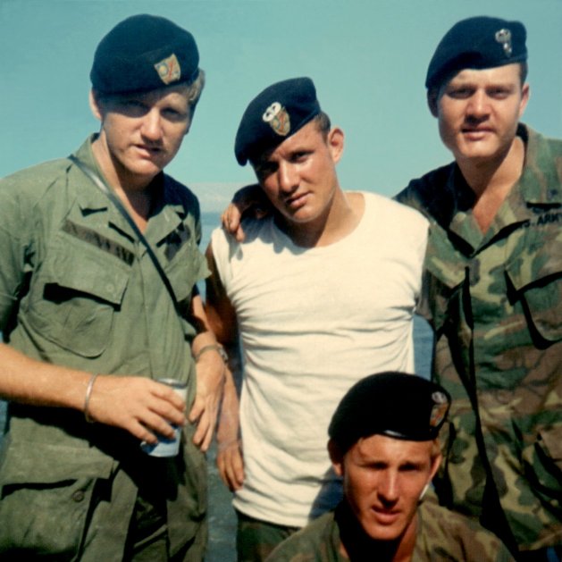 L-R Lloyd Grimes, Rick Masson, Don Robinson and kneeling Jim McLaughlin. Missing: Leonard Thornton and Randy White behind camera. Taken at Eagle Beach, about a month before he was killed.