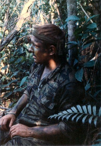 Richard Masson in the bush, all cammied up and takin' five.