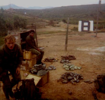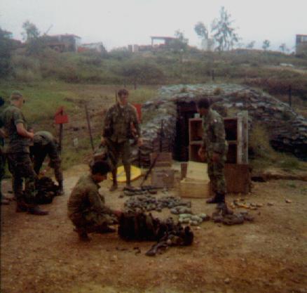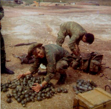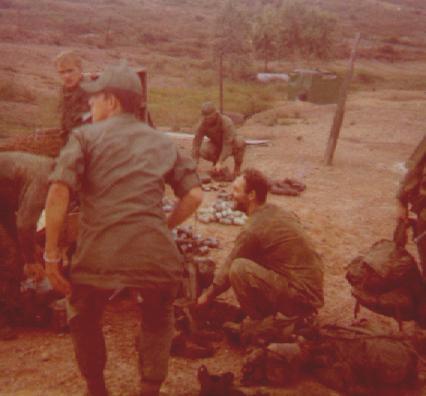 Team unloading ammo after mission. SGT Frazier next to boxes, others unknown |