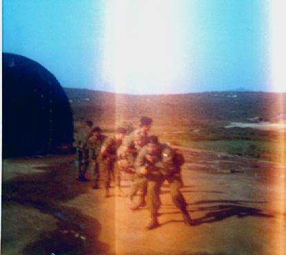 Team unloading after a mission. SGT Frazier on box, other unknown |