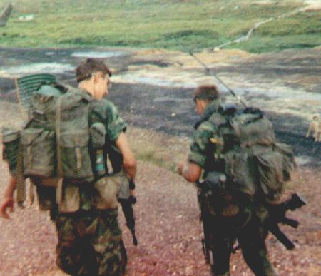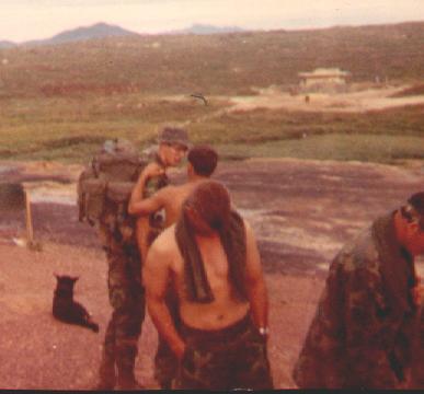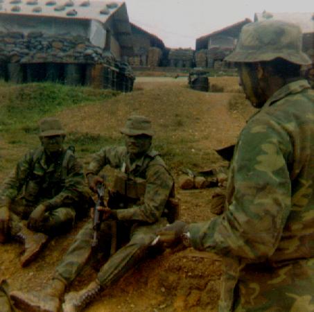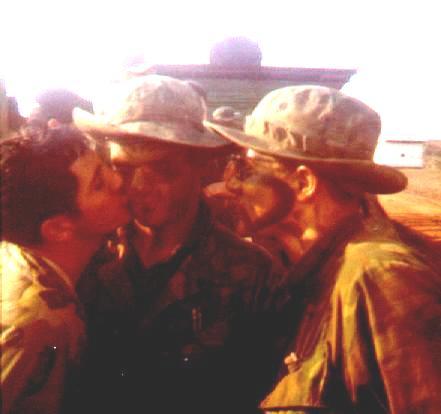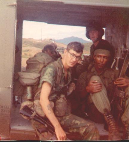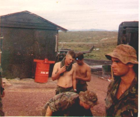 Aug 70, Heading for the pad. L to R: Byrd, LT Alexander (hidden), Wolfiel, Thomas, Moss (hidden), SFC Kiama (more) |