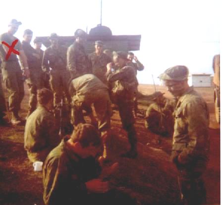 Seeing a team off. Carl Ostrom is in poncho liner. |