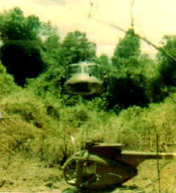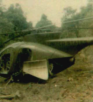 A B troop 2/17 Cav. LOH shot down in the Tennessee Valley, while inserting Ranger team Ethiopia on August 31, 1970. It was part of a 3 ship insertion and had the tail rotor shot off during the insertion. |