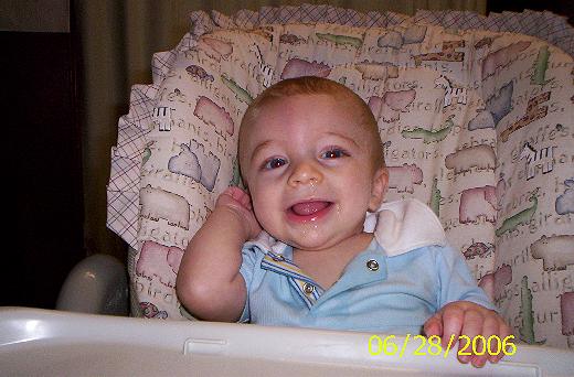 These last two were taken July 9, 2006, by his mom :-) Isn't this background adorable! I made it especially for cousin Collin and now share with Brayden :-) Please do not take it.