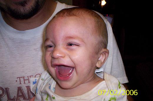 More pictures of our precious little man, Brayden Shane These last two were taken July 9, 2006, by his mom :-) Isn't this background adorable! I made it especially for cousin Collin and now share with Brayden :-) Please do not take it.