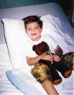Cole is doing much better! Everyday he does something that shocks his doctors and delights his family and friends. He is regaining his fine motor skills and just this weekend (September 27-28, 2003), he whispered his first words since the accident. Physical therapy, along with everyone's prayers and happy thoughts, are helping him tremendously. His next hurdle will be to learn to walk again. Please keep him in your thoughts and prayers and check out the pictures of Cole and his family below!