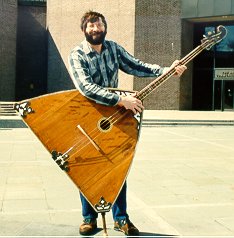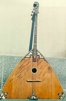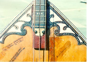 Here is the Rhinestone Cowboy. It is a contrabass balalaika that was built in the Chicago area in the 1920's, and played for years at a Chicago Russian restaurant. |