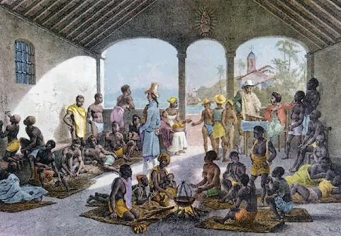 A imagem ao lado mostra um mercado de escravos no Rio de