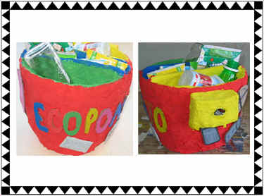 Os alunos , trabalham diversos materiais recicláveis que foram reutilizados e transformados;