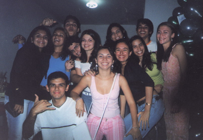 | Olha a galera de 2003 na confraternização de Natal. Na foto: Larissa, Vania, Marcio, Igor, Ana, Renata, Julio e Carol. Agachados: Diego, Natalle, Dielly....Me desculpem as duas na frente....Eu não conheço a turma toda e não sei o nome delas....mandem os nomes que eu mudo, ok??? | ||||