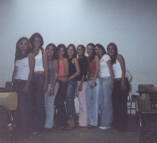 As meninas de 2003 em pose na sala de aula, no macacário. Na foto: Vânia, Renata,Larissa, Ana