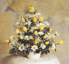 Rosas,Crisântemos Margarida branca no cachepot, frente única, tamanho médio. As cores poderão ser rosa, vermelha, branca, amarela, chá ou sortidas.