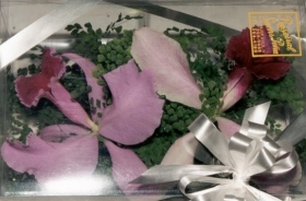2 Orquídeas Catleia na caixa de acetato. As cores poderão ser branca ou lilás.