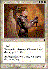 -Custo 6;2 Planícies e 4 incolores, 3/4; voar, quando o anjo guerreiro recebe 1 de dano, você ganha 1 de vida
