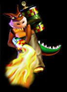marsupial. Ele vive imitando os movimentos de Crash, mas ele é muito