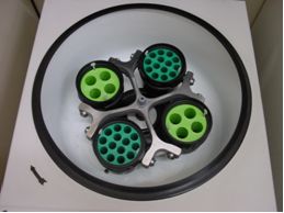de 45 – 50° com o eixo do aparelho. Nestas centrífugas,