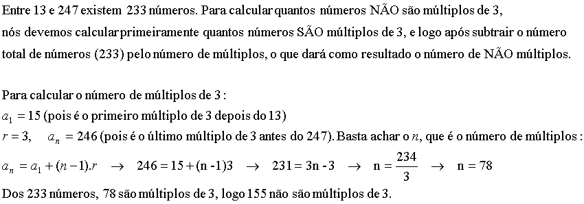 4) Calcule quantos números inteiros existem entre 13 e 247 que não são múltiplos de 3.