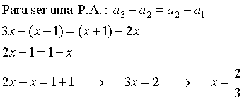 5) Encontre o valor de x para que a sequência (2x, x+1, 3x) seja uma progressão