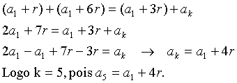 6) Numa progressão aritmética em que a2+a7=a4+ak, o valor de k é: