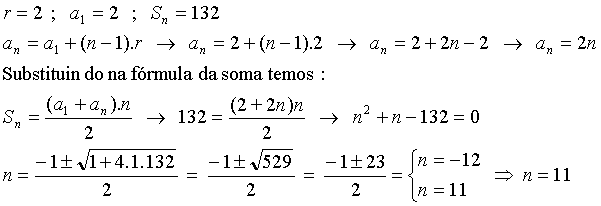 8) A soma dos n primeiros números pares positivos é 132. Encontre o valor de n.