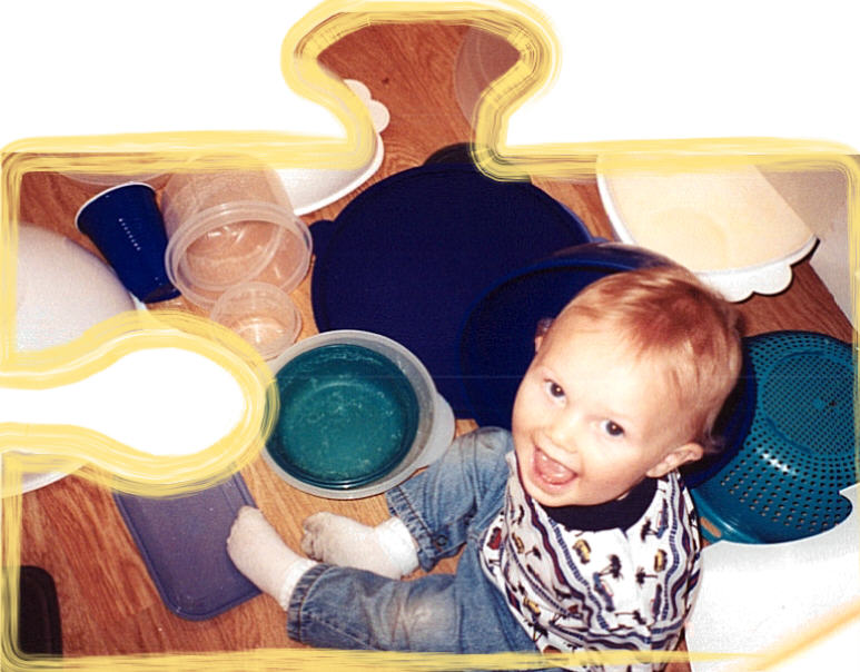Jared, at one year, is walking and thrilled that he can at least follow his brothers now. He can't quite keep up, but as long as he can follow and be with them, he is happy. He is constantly trying to go outside and can climb over just about anything. He has also begun talking - "bye-bye, mama, and uh-oh" are the extent of his vocabulary thus far. As you can see, he loves tupperware and any other cupboards or drawers he can get into. Email me to be notified when this page is updated. Just click on the fish.