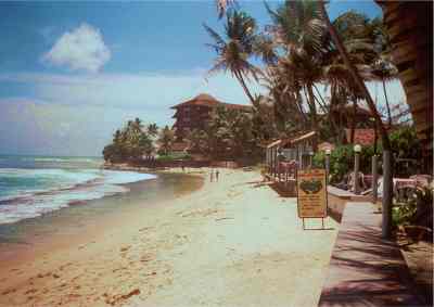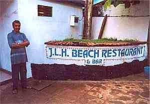 vom Coral Garden Hotel findet man im "JLH Beach Restaurant" von L. H. Jayalath de Selva (Tel 09-77139) - Bild Links - einen echt gemütlichen Platz, direkt am Indischen Ozean. Während des Mittag- oder Abendessen schaut man den Schildkröten in der Brandung zu, dank frischer Brise vom Meer kommt man nie ins Schwitzen, und das bei ausgezeichnetem Koch und Riesenauswahl an Meeresfrüchten. Wieder Aufgebaut! Tipp!! |