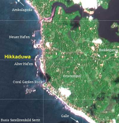 normale Wellen und keine Tsunami! Hikkaduwa hatte etwa 300 Tote zu beklagen- es war gerade Sonntagsmarkt als die Tsunami kam. Bilder nach der Katastrophe bei http://www.ruhuna.de/nachbeben.html ganz unten. Jetzt ist vieles schon wieder aufgeräumt, das Große räumten anfangs Amerikaner. |