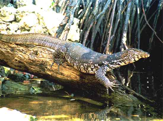 Trotz seiner Länge von 3m ist der Waran ungefährlich kommt man