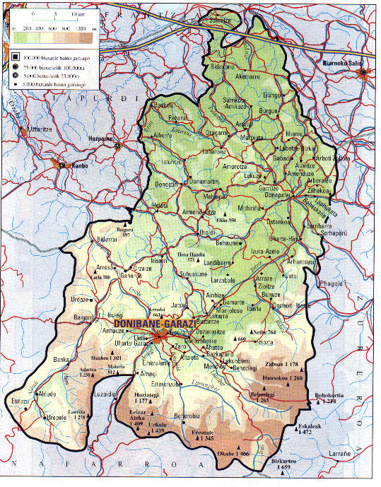 Donibane Garazi, acapara la mayor parte de los habitantes de este herrialde. Su geografía