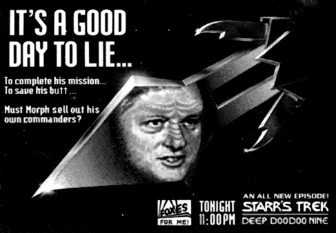 Reporter David Westphal (Bee Washington Bureau chief; Standing at the edge of history, The Modesto Bee, 27 June 1998, page 1) wrote that Bubba's Beijing Homecoming was "steeped in symbolism -- an American president honoring his host's demands...." Westphal mentioned Clinton "putting his hand over his heart at the playing of the national anthem," but failed to observe the most telling symbol in the entire ceremony: Halfway through the Star Spangled Banner, while C-SPAN's camera cut away to show the goose-stepping soldiers whose honor he was receiving, the president dropped his salute! This unprofessional act is unworthy of a Commander-in-Chief. It insults our flag and our nation. It reveals half-hearted loyalty to our nation and its Constitution. Its symbolism matches the reality of the worst of anything Clinton has done. It says a lot about Clinton, that nobody I've told about this has expressed surprise. The act is so typical of Clinton, that none even challenged my observation! Correction: There was one indication of surprise. One thought I was "going to say that the Commander-in-Cheat had reached down to adjust his zipper." With this president's history, you never know.... Perhaps he thought one salute was enough. To me, the flag and the anthem don't stand for the govern-ers. It stands for the concepts laid out in the Constitution. It stands for people like my dad, whose coffin it draped; people who risked and gave their lives to secure our right to make such a mess out of things. So our flag and anthem I will salute; while to our president I will reserve a salute of another kind. |