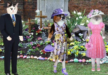 We hope mew haff a Happy an fun Easter! Please take our card fur mew.