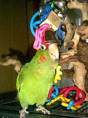 Ginger: Oooh, *mewgiggles* Dat big parrot gots a hat on!