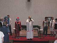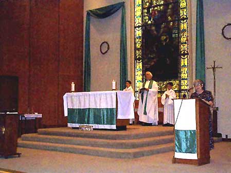 A great deal more emphasis is placed on the community in the new Mass and this can be seen in its general externals. For instance, the altar generally faces the people and need only be a simple table design. The priest prays in an audible voice in the language of the people, and he is encouraged to behave like an entertainer. Laypersons are encouraged to enter what was formerly the sanctuary and assume many of the roles formerly reserved for the ordained (e.g., the readings of scripture or distribution of Holy Communion). And less concern is given to the costly nature of appurtenances such as vestments, chalices, and patens. Prior to Vatican II much more emphasis was placed on the glory and honour of God, and much less on the community. The altar faced east, the priest prayed with his back to the people, often in an inaudible tone, and the whole Mass was conducted in sonorous Latin. The sanctuary was cordoned off from the main body of the church by a rail or screen in the style of the Holy of Holies in the Jewish temple, and laypersons were not allowed to enter there without special permission. A great deal of emphasis was placed on the resplendence of furniture and appurtenances. For instance, the altar needed to contain the relics of a Saint, it had to be made of stone, mounted above steps and built under a crucifix, and it was to be adorned by such things as a throne, a reredos, gradines mounted with candles, and three altar linens. Appurtenances such as vestments, chalices, and patens, also had to be of a costly nature — the latter had to be at least gilt if not gold.