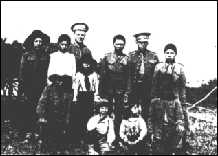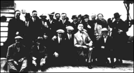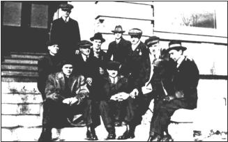 Brown (fourth from left, seated and wearing flat cap) with friends in Edmonton.
